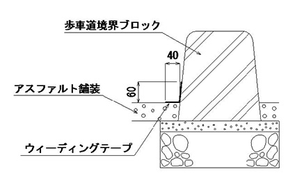 - ⑥境界ブロック立ち上り部とアスファルトの接地部にヘラなどでしっかり押し当てて下さい。